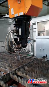 圖5 小三維件簡易工裝 (3)激光切割系統(tǒng) 我廠的三維激光切割機(jī)床使用的是二氧化碳板條式激光器,激光發(fā)生器發(fā)出的激光需要經(jīng)過由設(shè)在機(jī)床各自軸上的反射鏡片組成的光路系統(tǒng)(所謂飛行光路)傳到激光切割頭的聚焦鏡上,再通過聚焦使平行光束變成光點(diǎn)照射在工件上,通過燒熔、吹屑等動作完成切割工作。影響激光切割質(zhì)量的因素很多,激光的功率,模態(tài)頻率,整個光路系統(tǒng)的傳輸效率,穩(wěn)定性等,還有加工材料的光反射率,切割用氣體種類,氣體壓力,切割噴嘴的口徑大小,噴嘴的形狀,切割時的焦點(diǎn)位置,打孔的焦點(diǎn)位置,切割功率與速度的對應(yīng)等。這些是激光切割要考慮的因素,三維激光切割還需面對切割噴嘴與工件不垂直時加工狀態(tài)。這是由產(chǎn)品形狀與切割頭干涉所造成的,有時這種干涉使得加工無法順利完成,不得不更改工藝流程。三維激光切割對光路的準(zhǔn)確性要求高,即使機(jī)床的A軸(B軸)和C軸轉(zhuǎn)了很大的角度時,光斑也要保證出現(xiàn)在噴嘴的中間位置,不能有大的偏差。 3.結(jié)語 通過三維激光切割設(shè)備的生產(chǎn)實(shí)踐,三維激光切割對加工效率的提升是非常顯著的。對于二氧化碳板條式激光切割系統(tǒng),激光器的各種性能光束的純度,能量的密度,高負(fù)荷時輸出的穩(wěn)定性,激光氣體的壽命與經(jīng)濟(jì)性,對電壓變化的適應(yīng)性等都將極大地提高三維激光切割的能力、質(zhì)量與效率。機(jī)床方面光路系統(tǒng)的傳輸效率,激光頭的靈活性,程序的易改與方便化,智能化都是用戶期待的,也是廠家應(yīng)該努力的方向。 作者簡介:汪勇,一汽模具制造有限公司。